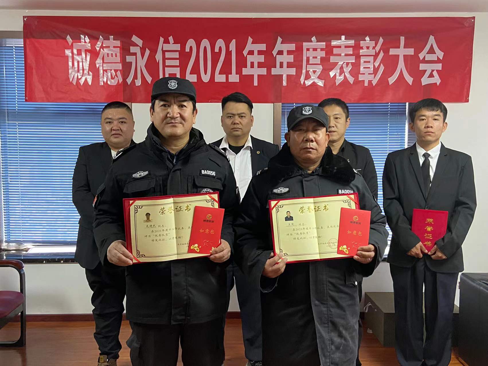 董事长特别提出对两位基层员工表彰,这两位队员认真工作、遵守各项规章制度,对人员、车辆和物品的进出管理做到了严格管控。在自己的岗位上恪尽职守,认真做好登记和交接记录。为人正直、以身作则,对工作有高度的责任感。这种尽职尽责、热情服务的工作态度不仅体现了一名保安员应该有的职业素养,还体现了为人民服务的精神,树立了公司保安的良好形象。董事长王永希望广大员工要以他们为榜样。也希望以上获得荣誉表彰的个人,珍惜荣誉,戒骄戒躁,在工作岗位上继续保持和发扬模范带头作用。